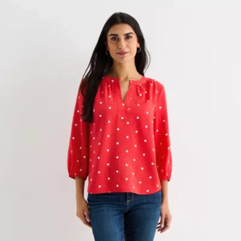St. John's Bay Womens Split Crew Neck 3/4 Sleeve Blouse