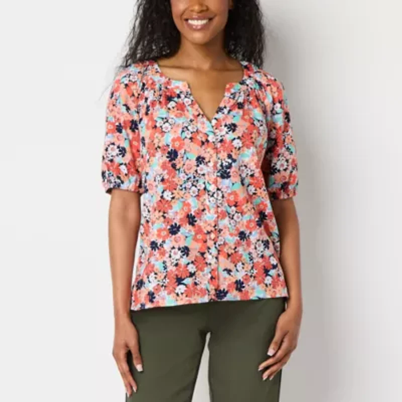 St. John's Bay Womens Tall Split Crew Neck Short Sleeve Blouse