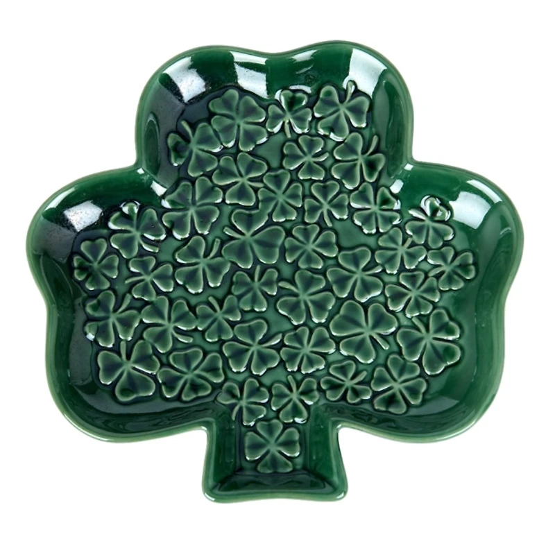 Our St Patrick Clover Salad Plate will become your new good luck charm! Find all the four-leaf clovers while you host your St. Patrick's Day gathering! Plate measures 8L x 8W in. Crafted of ceramic Shamrock clover shape Clover carved designs Hues of green Food safe Care: Hand wash. Contact your local Kirkland's store for availability. Quantities and selection may vary by location.