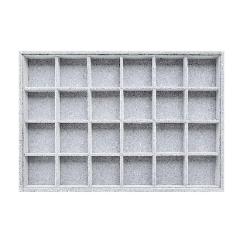 Elevate your jewelry organizing skills with this Stackable 24 Cubes Jewelry Tray. It features 24 cubes, each measuring 2 inches, so you can comfortably arrange rings, earrings, necklaces, bracelets, and other small items. This gray jewelry tray is made of soft, quality velvet materials and durable wood. The stackable construction saves space and easily fits in drawers and nightstands.
