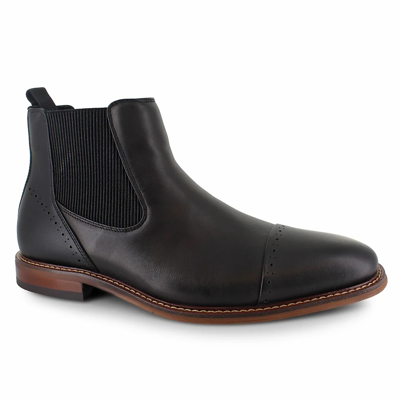 More than your average Chelsea boot, the Stacy Adams Maury is crafted with a smooth genuine leather upper to create a one-of-a-kind cap-toe boot. Handsome brogue details along the toe and heel add a little flair to the design while dual elastic goring allows for an easy on and off when the day is done. The RedZone removable footbed provides anatomical arch support through a molded heel cup for comfort in every stride.