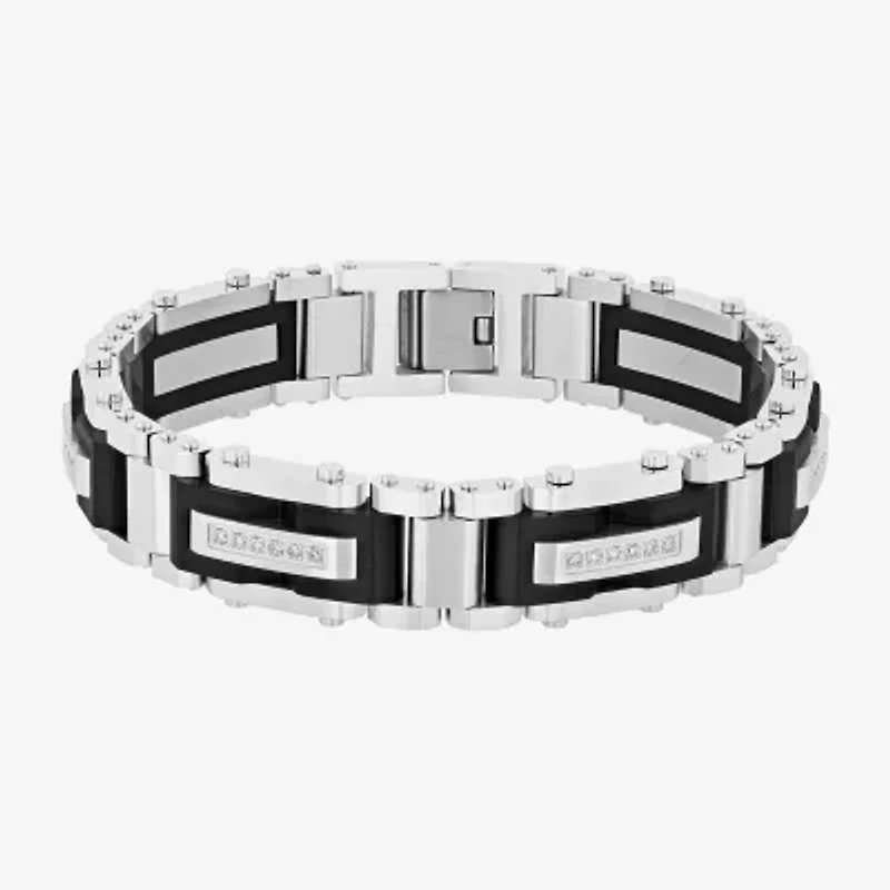 Stainless Steel (G-H / I1) 3/8 CT. T.W. Lab Grown White Diamond Solid Link Bracelet in Chattanooga, TN