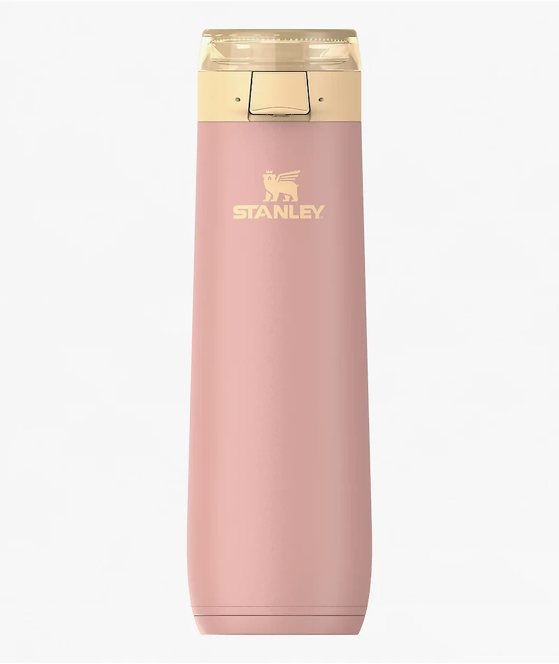 Enjoy a casual water bottle perfect for days on the go with the 20 oz Flowstate™ Spring bottle from Stanley. Arriving in a Peach Rose colorway with a pink base and gold lid, the bottle has a bright and eye-catching look. The secure locking lid preven