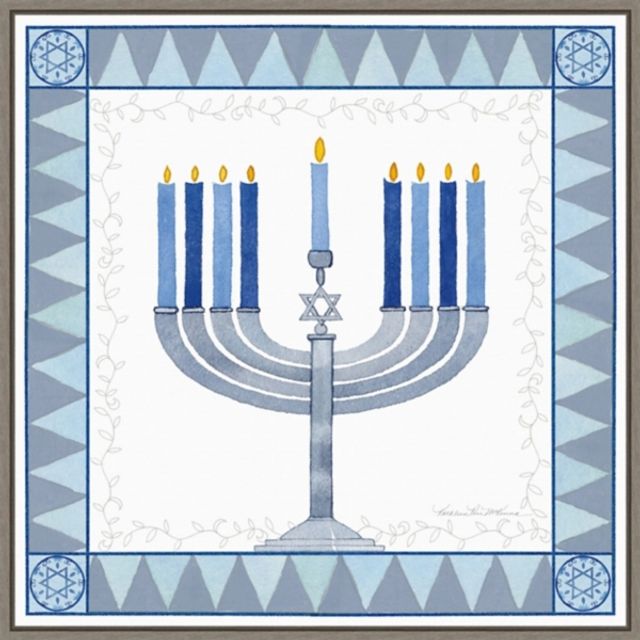 Navy Menorah Framed Hanukkah Wall Art