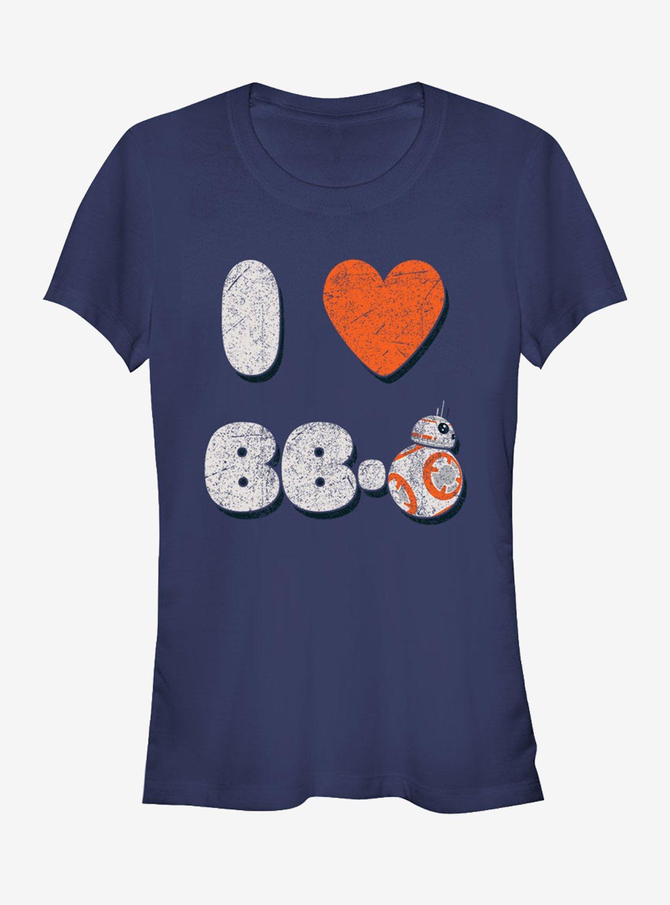 Droids across the galaxy are giving the Star Wars I Love BB-8 Navy Blue T-Shirt two lighter thumbs up! A distressed print on the front of this cute BB-8 T-shirt will let everyone know how affectionate you feel towards the spunky little BB-8 unit that has everyone talking. 100% Cotton.