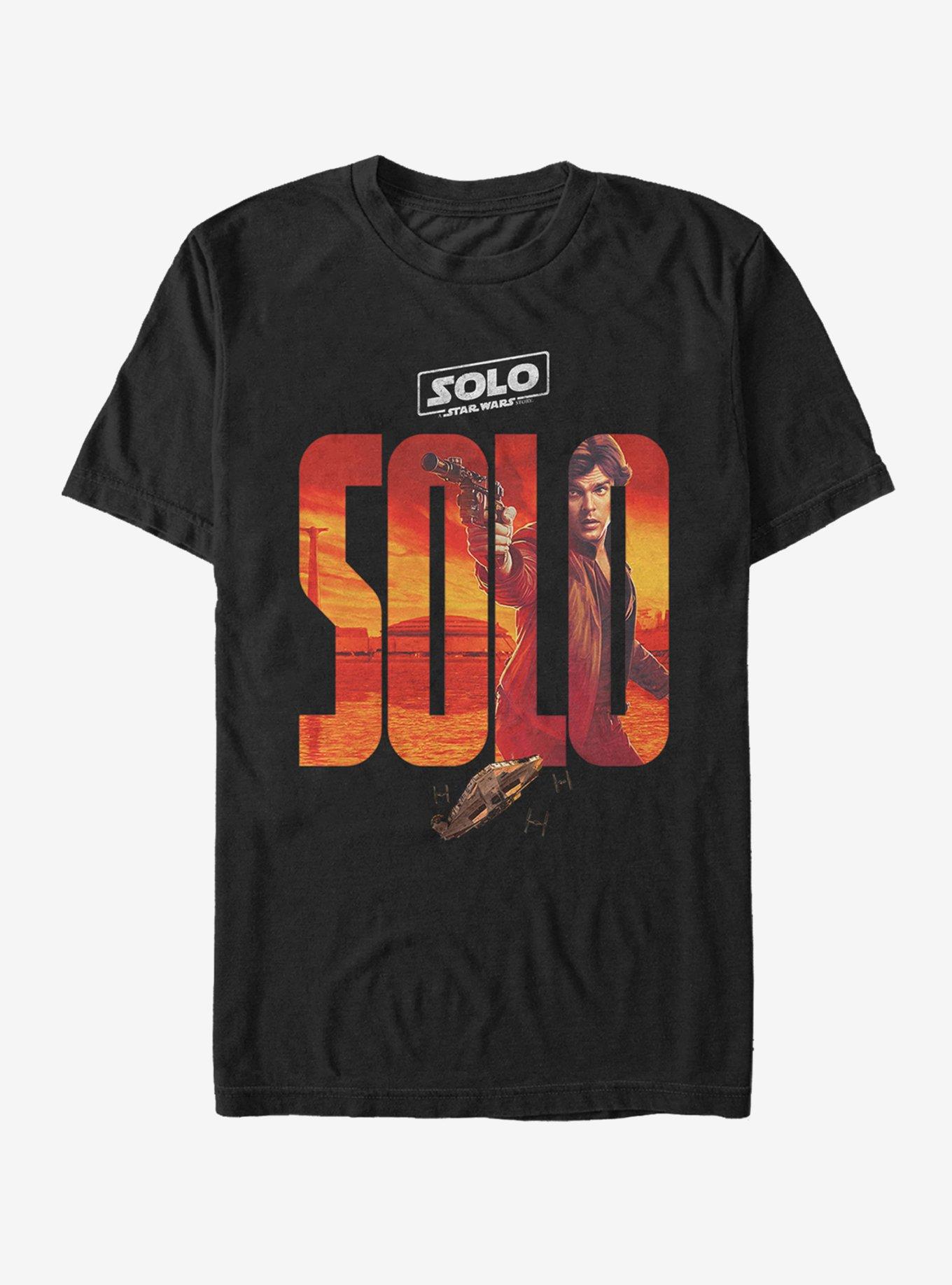 The future leader of the rebel alliance knows he always has to look his best and that's why he has his sights set on the Solo: A Star Wars Story Han Movie Poster Men's T-Shirt. A graphic of Solo fills his name alongside the Solo logo across the front of this unique men's Star Wars shirt.
