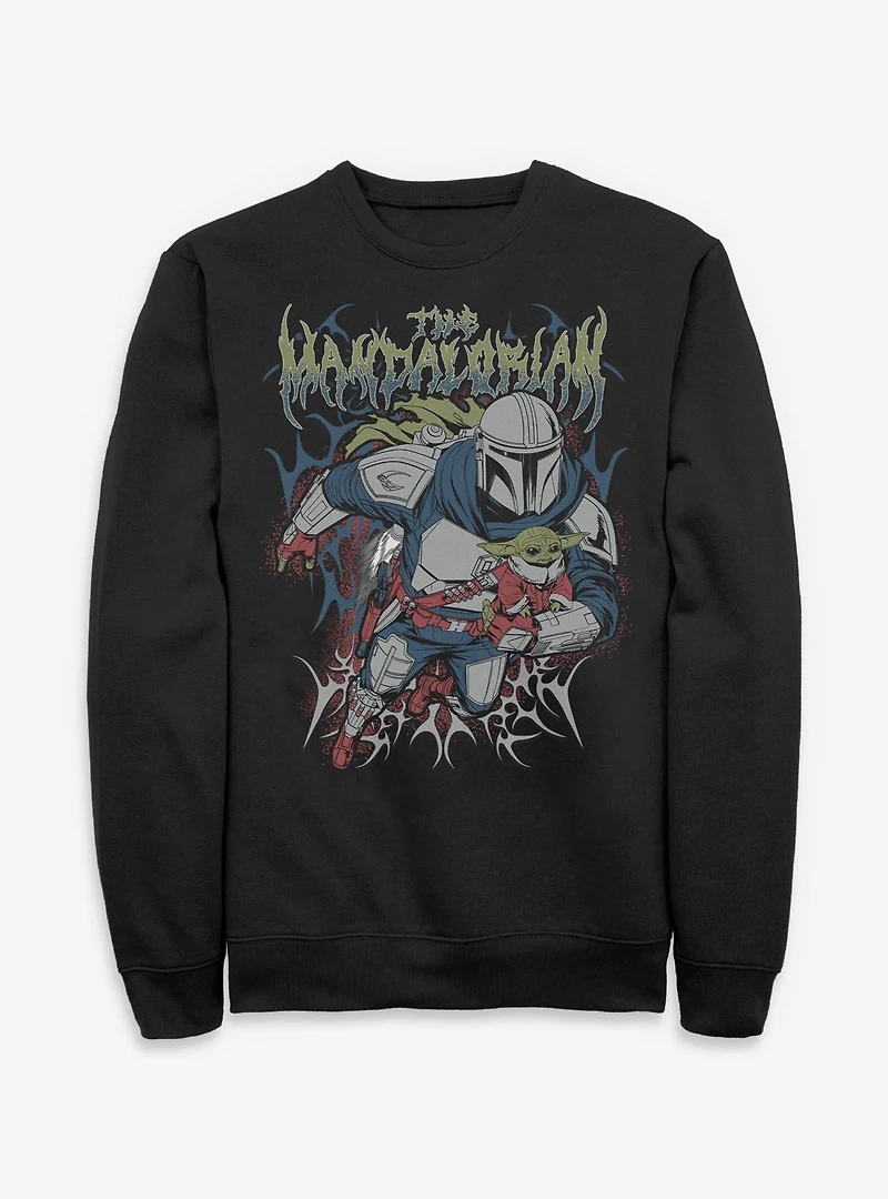 Star Wars: The Mandalorian And Grogu The Mandalorian & Grogu Duo Hunters Metal Font Style Sweatshirt Box Lunch Exclusive