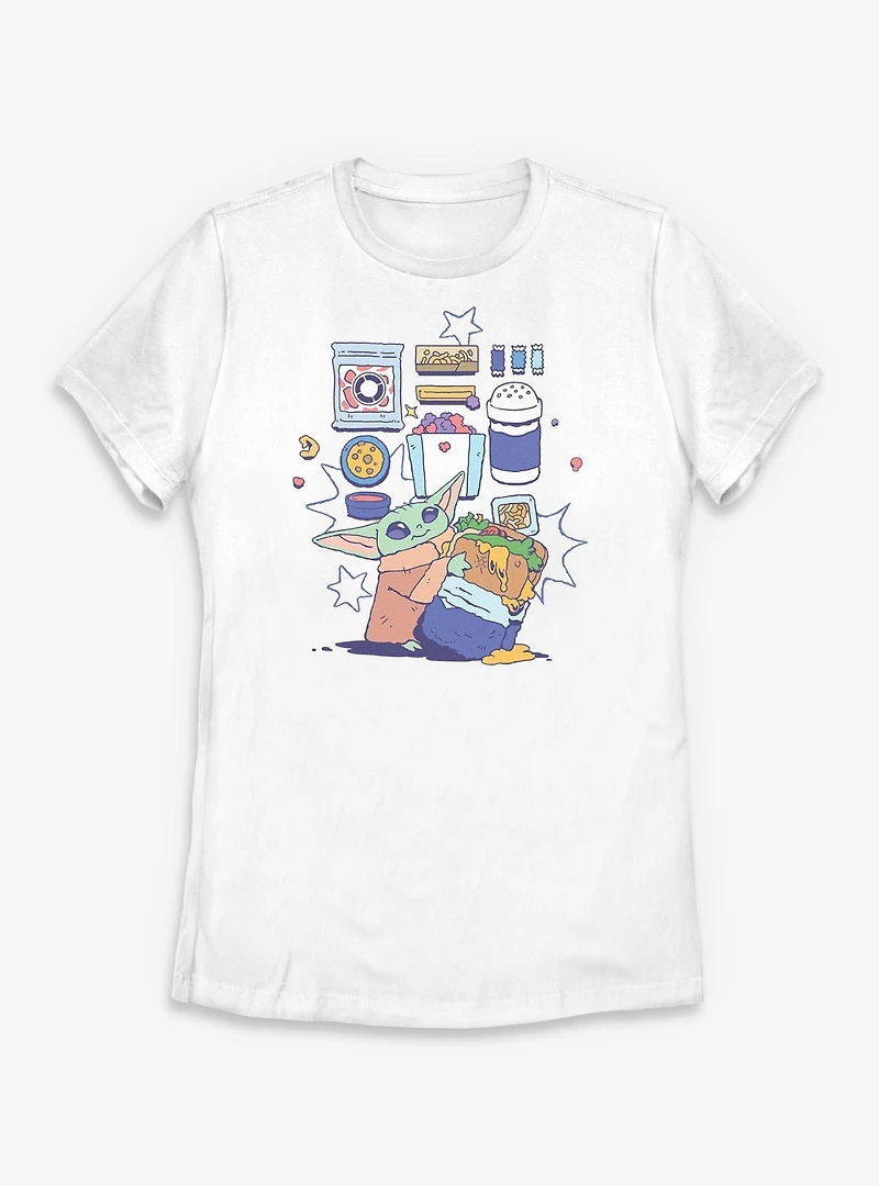 Star Wars: The Mandalorian And Grogu Enjoying Snacks Womens T-Shirt