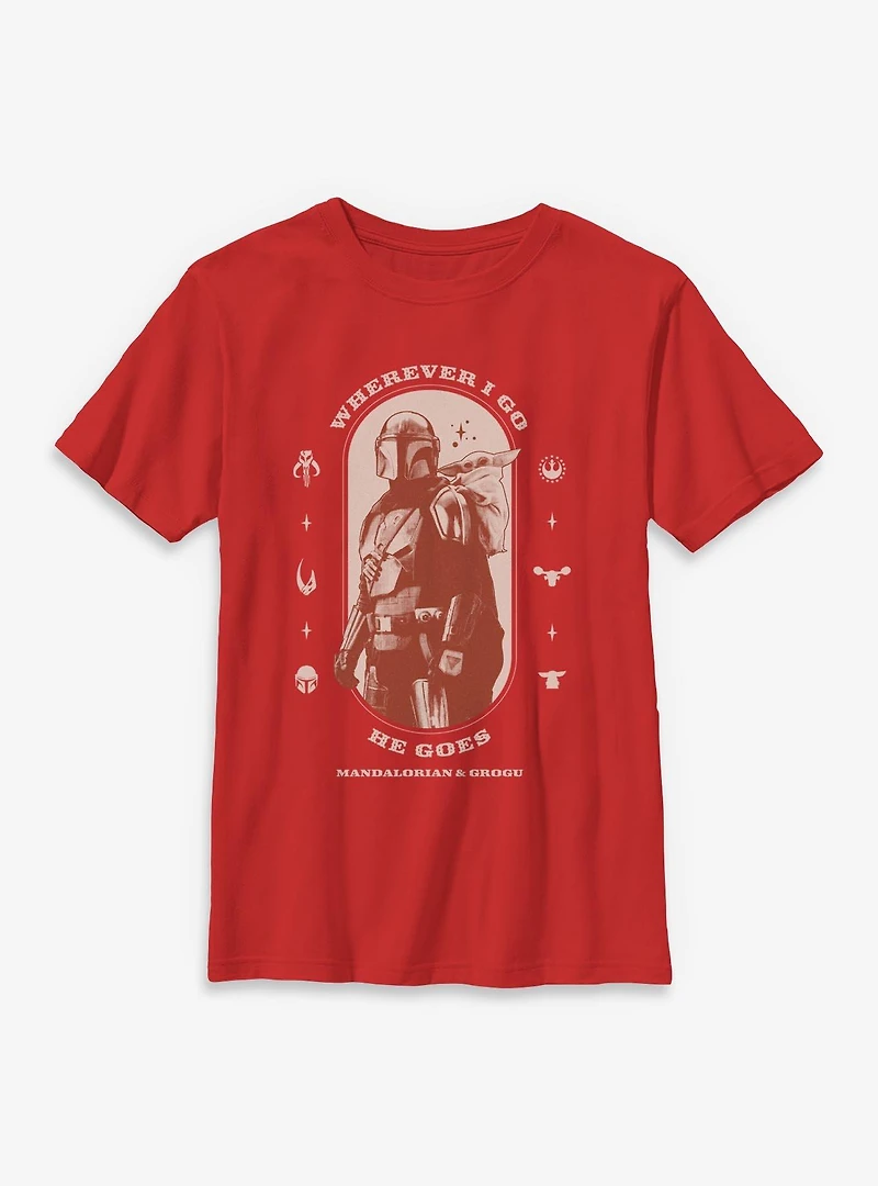 Star Wars: The Mandalorian And Grogu Wherever I Go He Goes & Profile Youth T-Shirt
