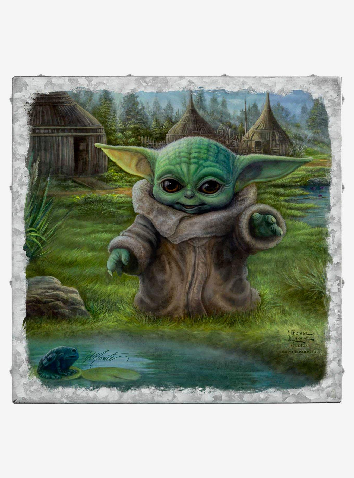 Favorite characters come to life on Metal Art Boxes, each piece features vignettes of artwork by Thomas Kinkade Studios. Vibrant colors on metal highlight the power of iconic heroes and villains as portrayed by the artists. Metal Art Boxes can be displayed alone or together ? the perfect addition to a comic book fan?s collection. Features a printed design on galvanized metal, versatile table-top and wall-mount display options, rivet embellishments on top and sides, and metal hanger mounts in top corners. Certificate of Authenticity included. After helping save the Sorgan village from raiders with an AT-ST Raider, the Mandalorian takes a moment to consider the possibility of a peaceful life with them as the Child plays by a pond. Whereas the appeal of this sanctuary is tempting, deep inside Mando knows that if he and his charge are ever to be safe, they must find a way to outrun, or outsmart, the pursuers who are tracking them. Item cannot be shipped to P.O. Boxes