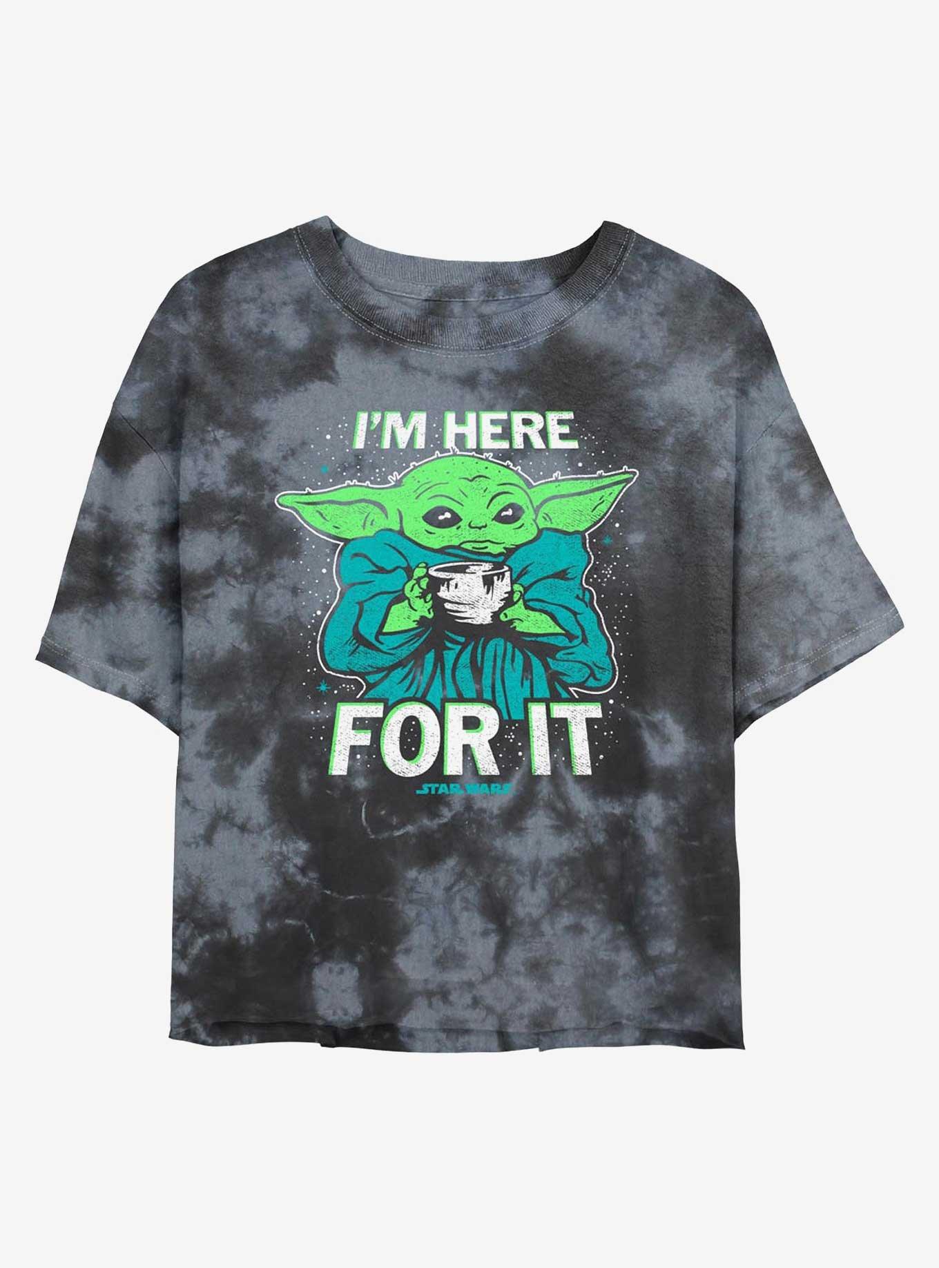 Star Wars The Mandalorian Grogu Tea I'm Here For It Tie-Dye Womens Crop T-Shirt