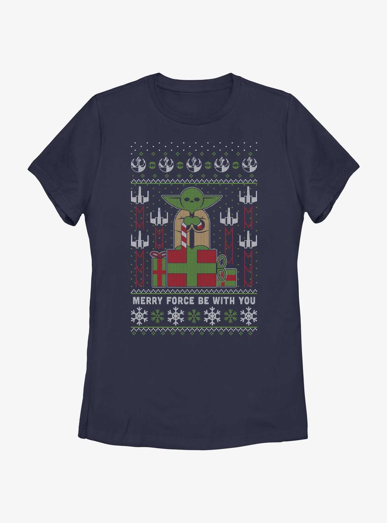Star Wars Yoda Merry Force Ugly Christmas Pattern Womens T-Shirt in Chattanooga, TN