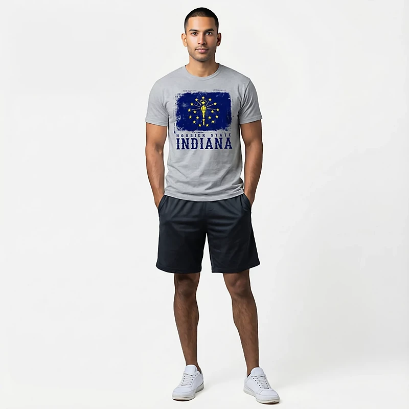 Feel your best when you wear the State Life Men's Indiana Grunge Flag Short Sleeve T-shirt. It is made of 90% cotton and 10% polyester for comfort and durability, and Indiana's state flag is screen printed across the chest, showing off your state pride.