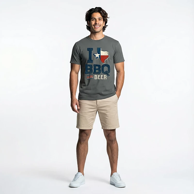 The State Life Men's Texas Love Bbq And Beer Short Sleeve T-Shirt celebrates Texas culture with a graphic that embodies the love for barbecue and beer. Made from comfortable, breathable fabric, it's perfect for casual gatherings, cookouts, or everyday wear, showcasing a relaxed, Texan vibe.
