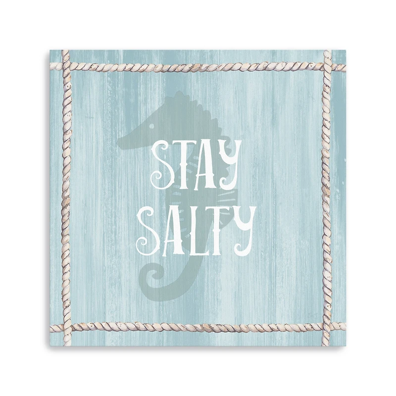 Customize your space and personalize your walls with Stay Salty Canvas Giclee. Printed on canvas material with top-of-the-line printers and stretched onto strong pine wood that's been rounded and beveled to prevent warping, this artpiece has an artisan's touch to its production and quality. Key Features: Print measures 20x20x1.25in.Giclee printed on high quality canvas on solid wood stretchersGallery wrapped edges for a clean and tidy appearanceWeight: 4Comes ready for wall mount with sawtooth hangers for mountingCare: Dust with a soft, dry cloth.