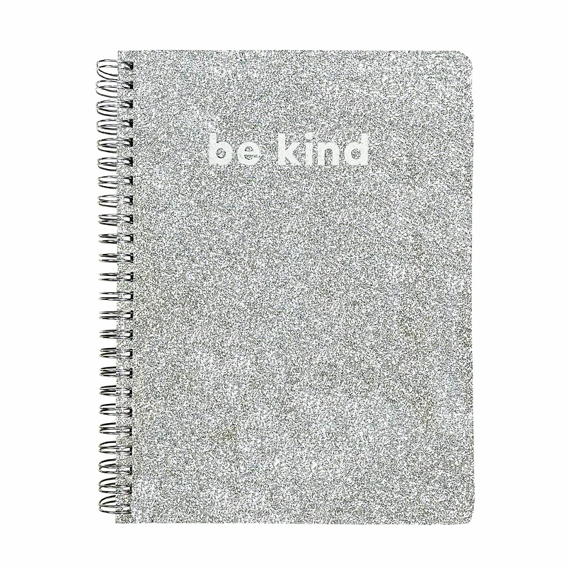 160 lined pages wait patiently inside a pretty printed cover. Fill this spiral-bound notebook with notes, secrets, or the next best-seller! This mini notebook fits well in most handbags to make the perfect companion for meetings, shopping trips, and more!Details:Silver with glitter accents8.25" x 6.25" x 0.5"160 pagesLined pagesSpiral bound