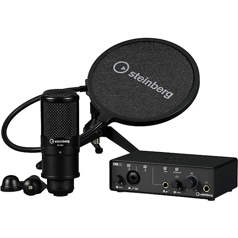 Steinberg IXO12 B Podcast Pack with Mic, Table Top Stand, & Pop Screen