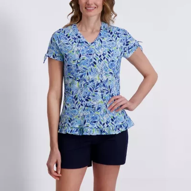 Stella Parker Womens V Neck Short Sleeve Tunic Top