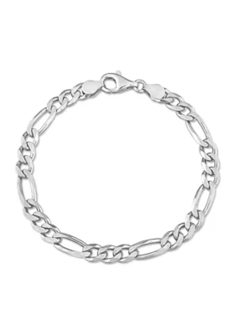 Get a classic look that never goes out of style with this charming Figaro Bracelet. In sparkling sterling silver, this attractive 7.5-inch bracelet is securely and comfortably fastened with a lobster clasp. Enhanced with a high polished finish, this sumptuous bracelet is made in Italy and a perfect gift of all ages. A timeless and versatile addition to any jewelry collection. Lobster closure Polished finish Warranty available, 1 Year Italy Imported Belk Exclusive Product Specifications 5.5mm Width, 7.5" Material & Care Metal, Sterling silver Clean with a soft cloth.