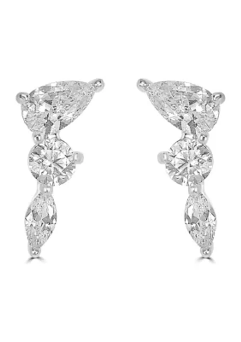 Sterling Silver and Prong Set Cubic Zirconia Mini Crawler Stud Earrings