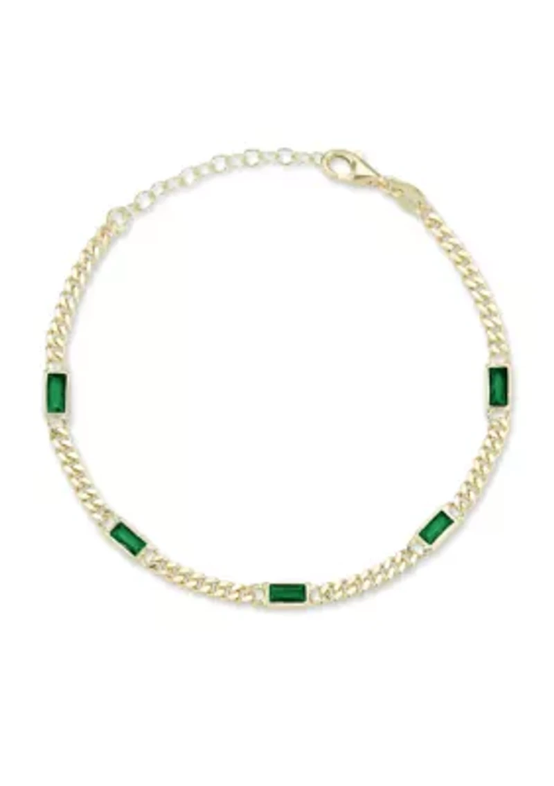 Sterling Silver Baguette Cut CZ Curb Chain Bracelet