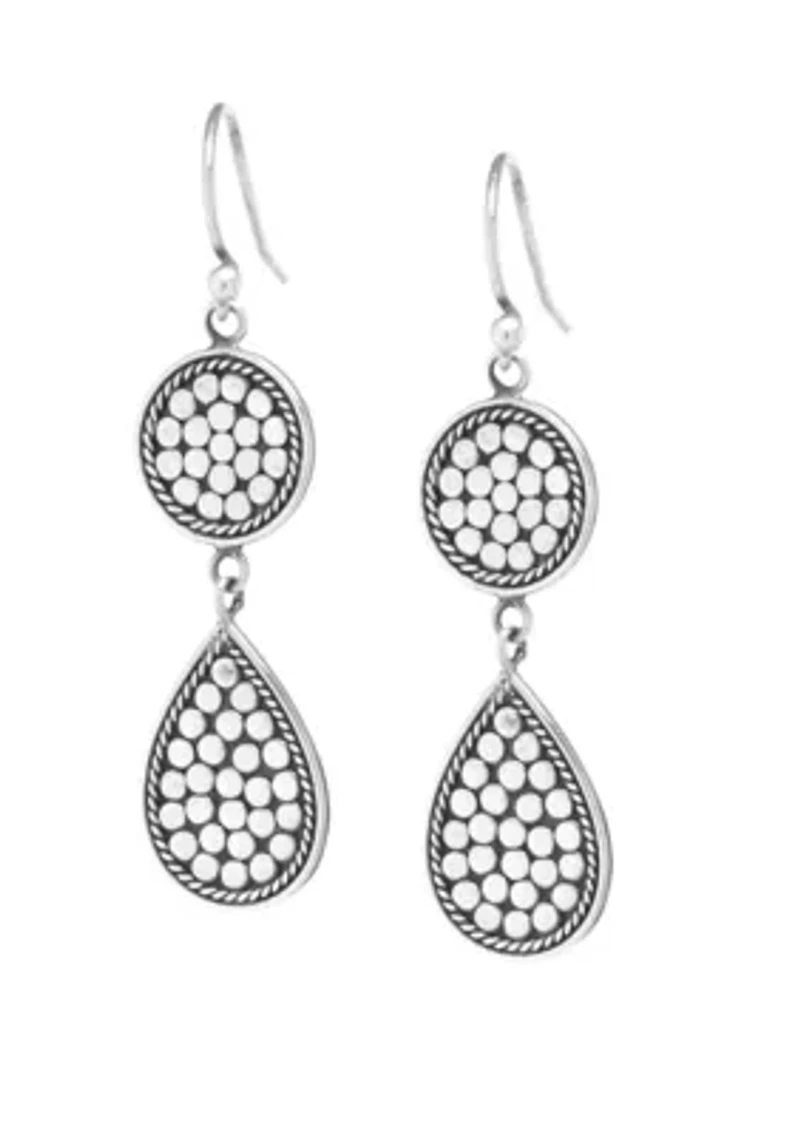 Sterling Silver Bali Beaded Round Teardrop Earrings
