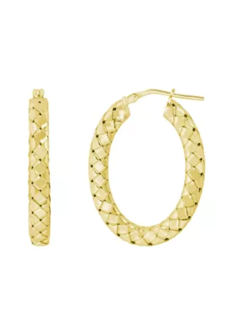 These oval hoop earrings feature a dimensional braided design that creates a bold, textured look with modern appeal. Available in your choice of Sterling Silver or 14K Gold Plated Sterling Silver. Click top closure Polished finish Italy Imported Belk Exclusive Material & Care Metal Metal, Sterling silver Clean with a soft cloth.
