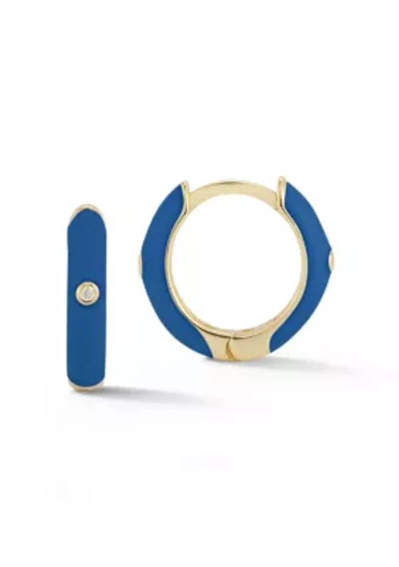 The Sphera Milano Sterling Silver Cubic Zirconia and Enamel Huggie Hoop Earrings bring a vibrant pop of color to classic hoop design. Each polished hoop is accented with sparkling cubic zirconia and a smooth enamel inlay, creating a playful contrast of shimmer and hue. The huggie style hugs the ear snugly, offering comfortable all-day wear while showcasing the intricate detailing. Perfect for layering or wearing alone as a statement piece, these earrings combine modern artistry, radiant sparkle, and colorful charm to elevate any look with subtle sophistication and lively energy. THESE EARRINGS ARE SOLD AS A PAIR. BASE METAL: 925 Sterling Silver. EARRING DROP: Approx. 0.45in. CLOSURE: Hinge post clasp. STONE TYPE: Cubic Zirconia. 1 pair of 2 earrings Hinge post earring Polished finish China Imported Product Specifications Approx. 0.45in earring drop Material & Care Sterling silver Use silver polishing cloth on silver items.