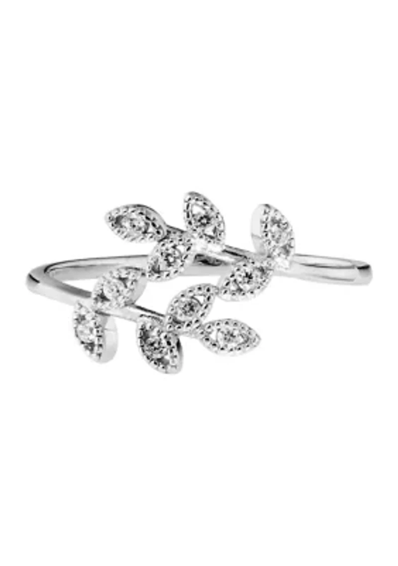 An elegant sterling silver cubic zirconia faceted double leaf linked novelty ring. 10 Cubic Zirconia Slip-on Polished finish Imported Belk Exclusive Product Specifications 0.34" x 0.78" Material & Care Sterling silver Clean with a soft cloth