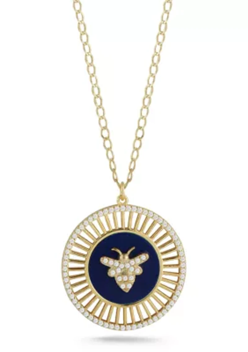 Sterling Silver CZ and Gemstone Bee Medallion Necklace
