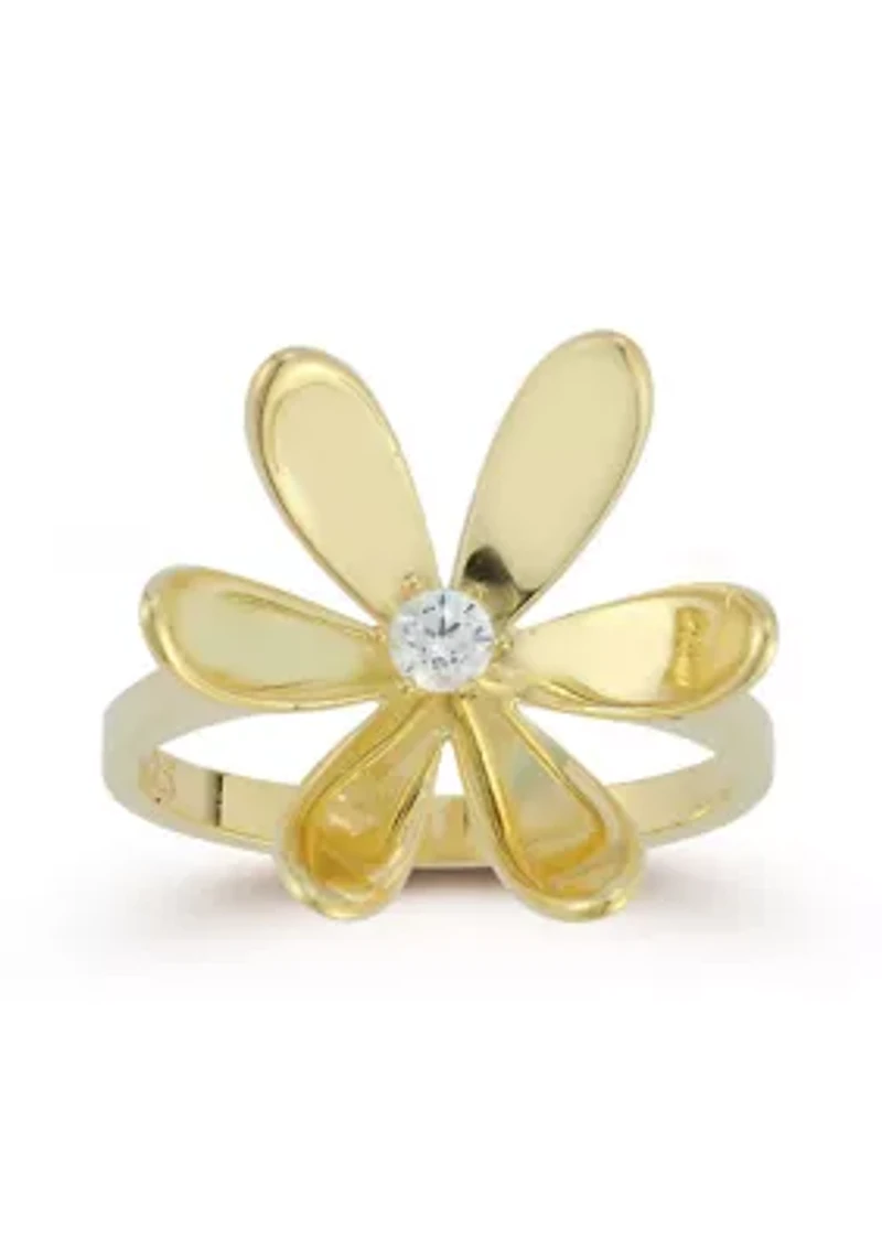 Sterling Silver CZ Bold Curved Flower Ring