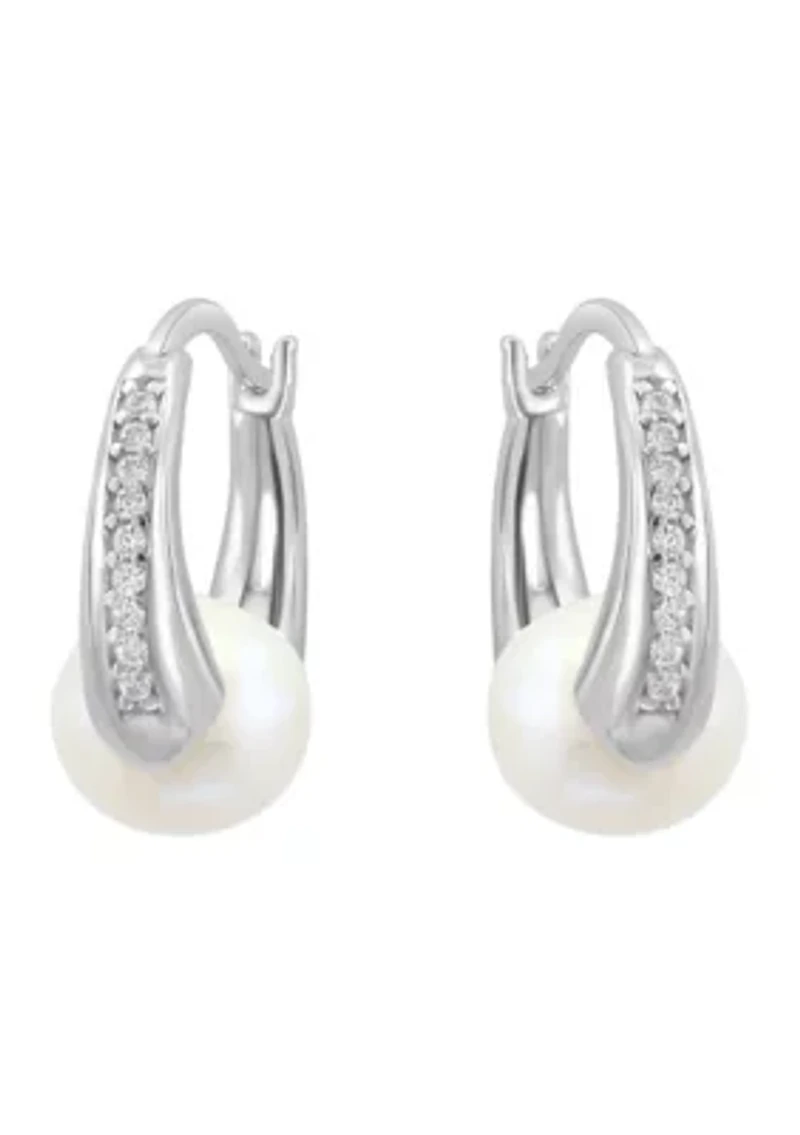 Sterling Silver Freshwater Pearl and Zircon Earrings