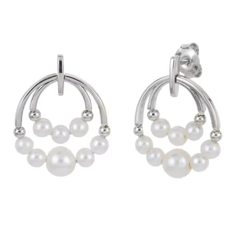 Modern with a classic touch. These sterling silver double circle earrings accented with delicate shining silver beads and graduated 3-3.5 and 5-5.5mm cultured freshwater pearls add effortless sophistication to any look. Post back Polished finish Imported Product Specifications 0.0000 Material & Care Sterling Silver Metal, Sterling silver Clean with a soft cloth.