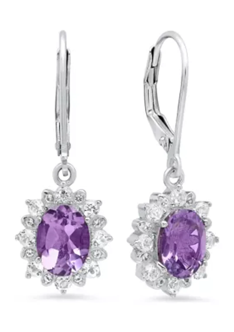 Sterling Silver Halo Sunburst Oval Amethyst Lever Back Earrings (8 mm x 6 mm) in Chattanooga, TN