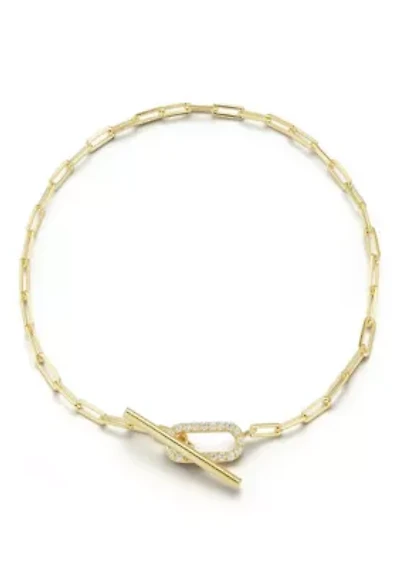 Sterling Silver Pave Toggle Clasp Oval Chain Bracelet