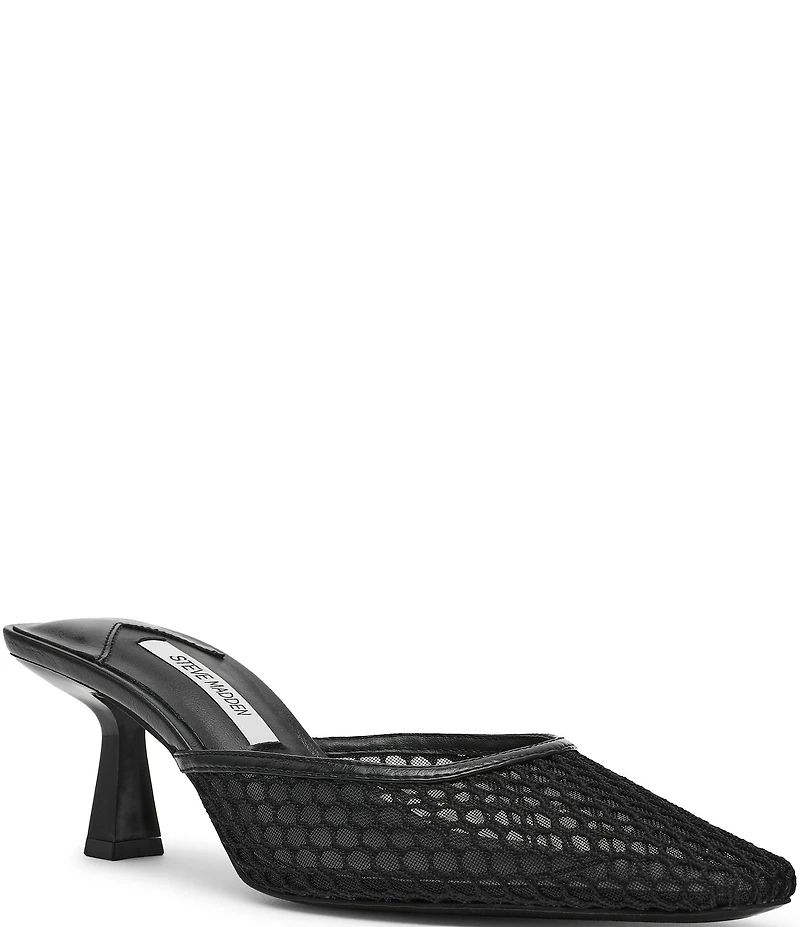 From Steve Madden, the Alyse Mesh Kitten Heel Dress Mules feature: Mesh and synthetic upper  Slip on design  Synthetic lining Synthetic outsole  Approx. 2.5'' heel height  Imported.