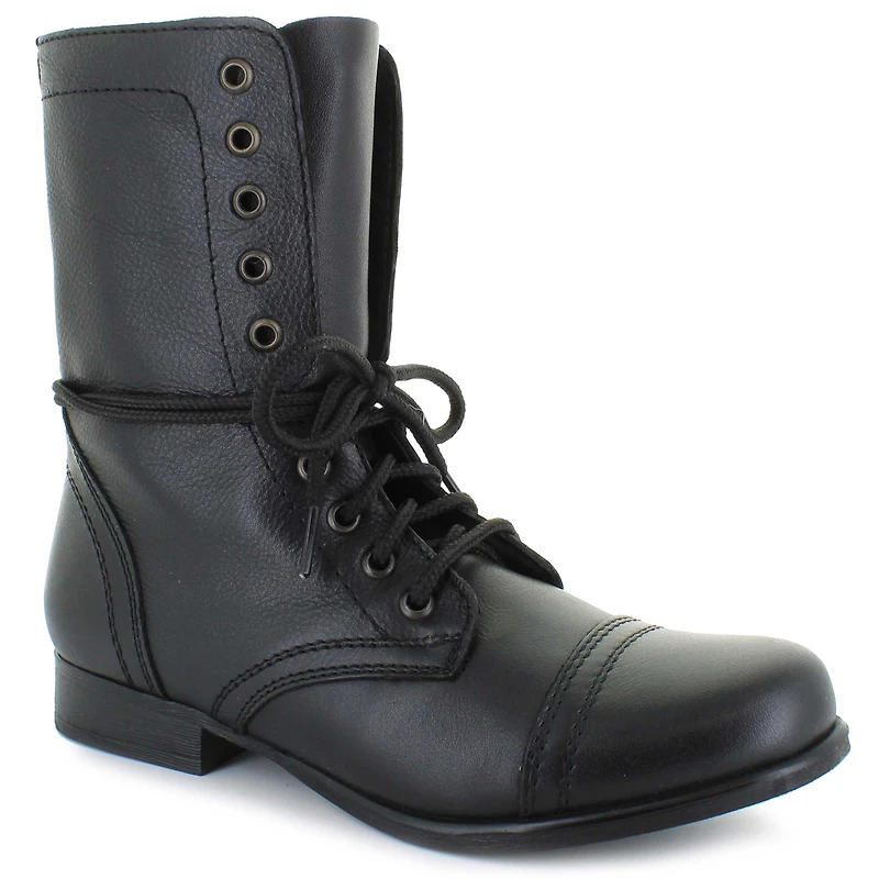The Steve Madden Maverik combat boots offer a versatile blend of style and functionality. Crafted with a leather upper, these boots exude durability and fashion-forward appeal. Equipped with an inside zipper closure and lace-up front, they provide a secure fit and easy on-and-off wear. What sets these boots apart is their unique foldable design, allowing you to wear them either folded up or down for different looks. The cushioned insole ensures comfort, making them ideal for extended wear.