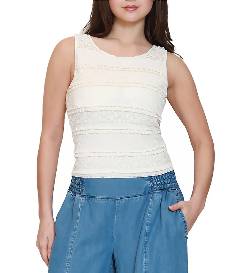 Stevie by Steve Madden Textured Ruffled Lace Cropped Top in Chattanooga, TN