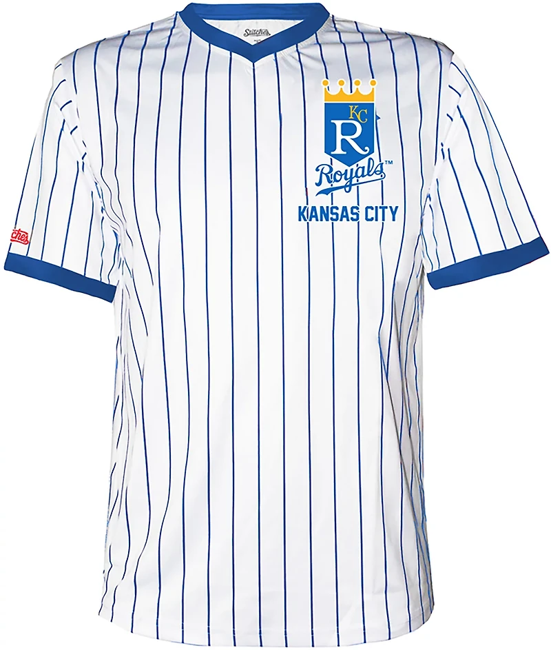 Represent your team in vintage style with this Stitches Men's Kansas City Royals Rookie T-shirt. It is made of 100% polyester for durability and a jersey-like feel, and the V-neck delivers a throwback look and a comfortable feel. Features a team logo on the left chest.