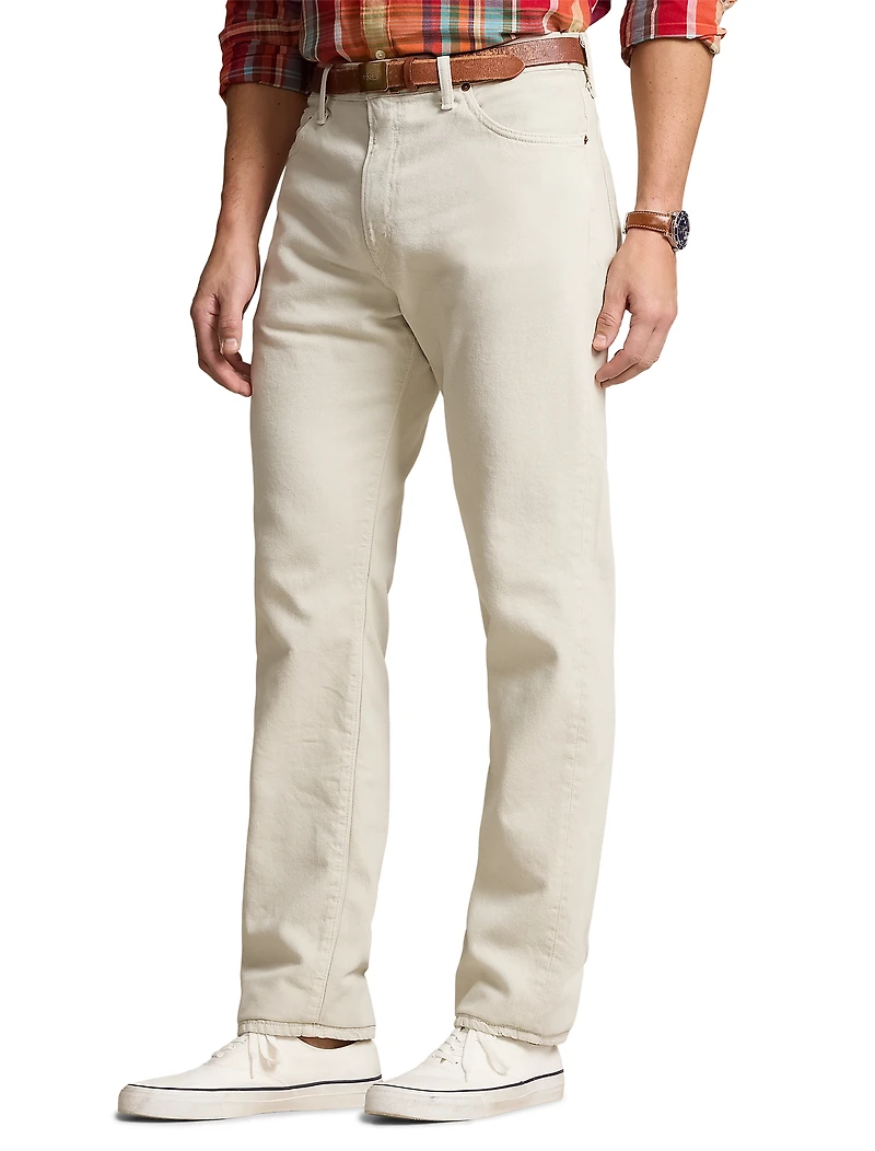 A rich denim finish and a hint of stretch makes these straight-leg jeans from Polo Ralph Lauren as comfortable as they look. Developed with a new lightweight fabric that includes hemp for strength and softness, the straight-leg style is fitted through the thighs and relaxed from the knees down. The perfect choice with a polo, tee or sport shirt, they feature the traditional styling which makes them a favorite in every man's collection.