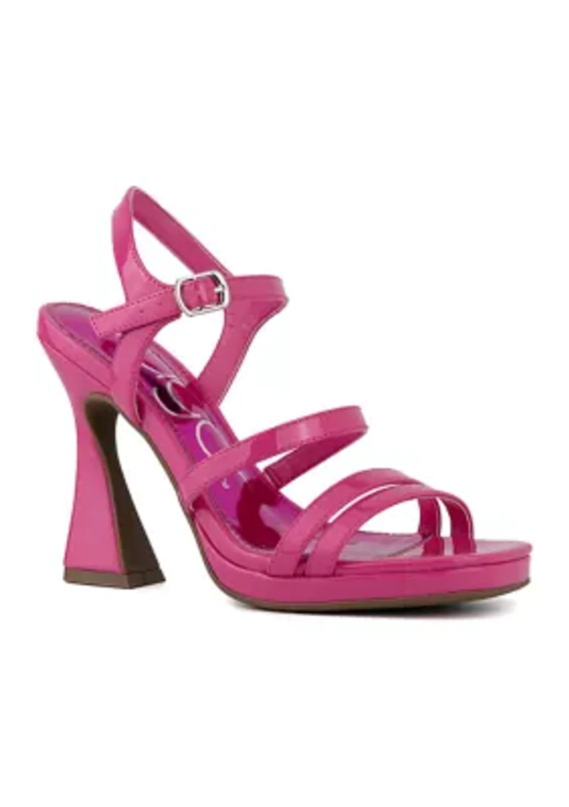 Designed with an architectural heel, these strappy dress sandals from Sugar are complete with a secure buckle closure for stability. Buckle closure Imported Product Specifications 4" heel Medium width Material Polyurethane