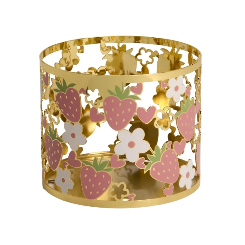 Decorate your home for spring down to the last detail! Our Strawberries 3-Wick Jar Candle Holder will showcase any one of our triple wick jar candles with a touch of sweetness. Holder measures 3.6H x 4.25 in. in diameter Crafted of 100% iron Features strawberry and floral cutout designs Hues of gold, pink, white, and green Accommodates one (1) triple wick jar candle Care: Dust with a soft, dry cloth. Contact your local Kirkland's store for availability. Quantities and selection may vary by location.