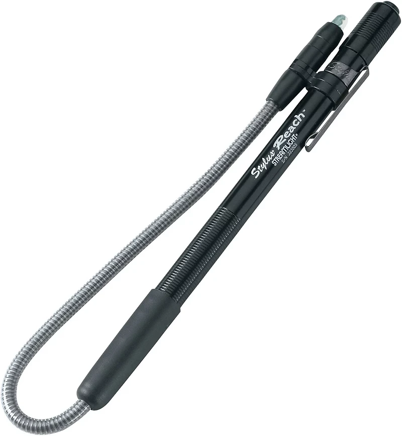 Illuminate hard-to-reach places with a Streamlight Stylus Reach 11 Lumen Penlight. It features bright white LEDs and a 14-inch cable for flexibility and extended reach. Momentary blink and constant on modes provide versatility, while a dependable battery provides lighting when you need it most.
