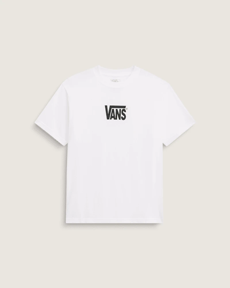 This classic T-shirt keeps things laid-back with a soft cotton knit and iconic Vans logo on the chest. The relaxed fit and short sleeves make it perfect for effortless everyday wear, whether you're hitting the skatepark or just hanging out. Pair it with your favorite jeans or shorts for an easy, comfortable look that shows off your Vans style.