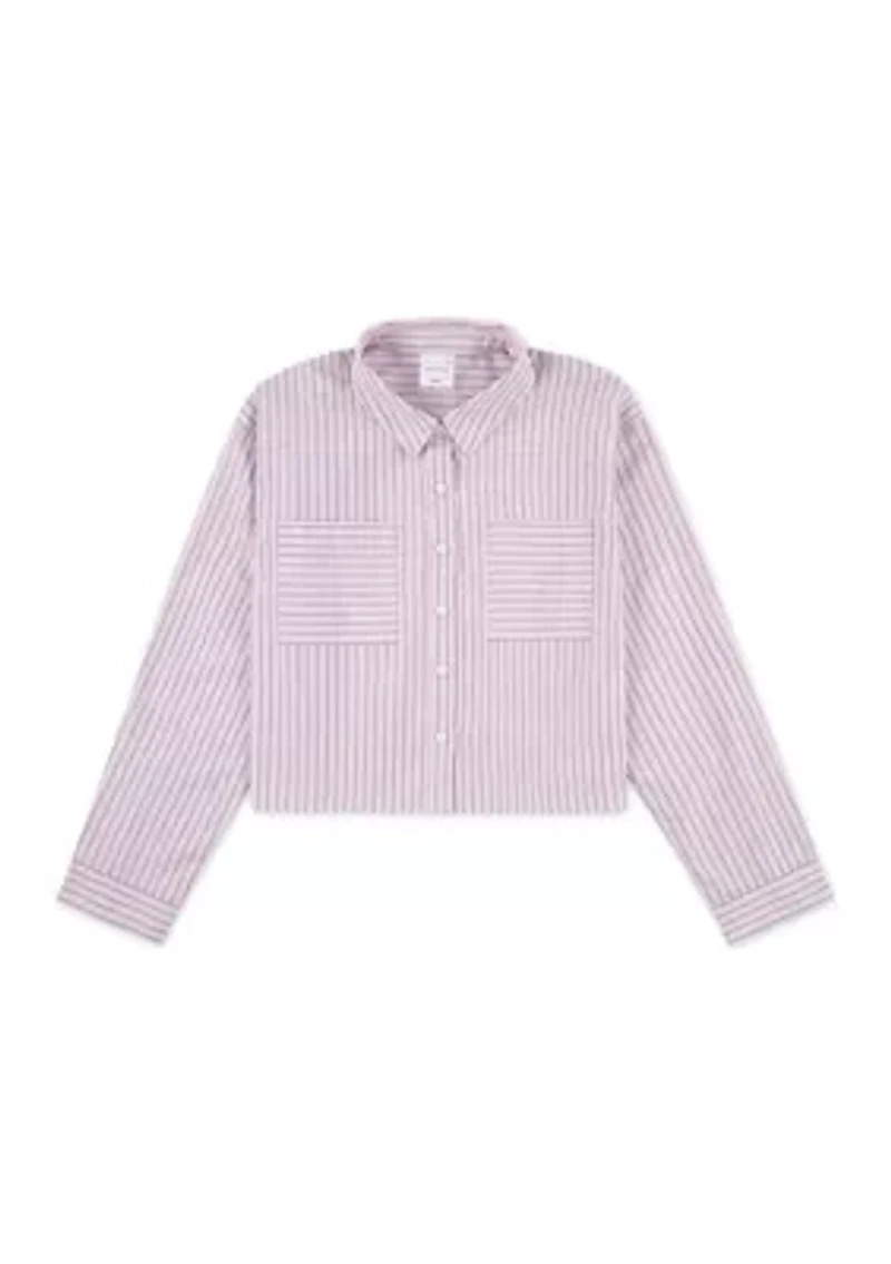Made from breezy cotton-blend fabric, this abercrombie kids button-front shirt features all-over stripes and a boxy silhouette for easy, laid-back style. Pullover Collar Long sleeves Chest patch pockets Imported Material & Care 60% cotton, 40% polyester Machine washable