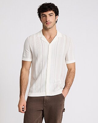 A timeless sweater polo made from a comfortable cotton-blend. This top features a camp collar, short sleeves, and a button-down front.