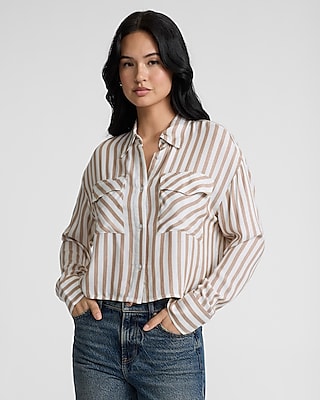 Striped Double Pocket Cropped Shirt in Chattanooga, TN