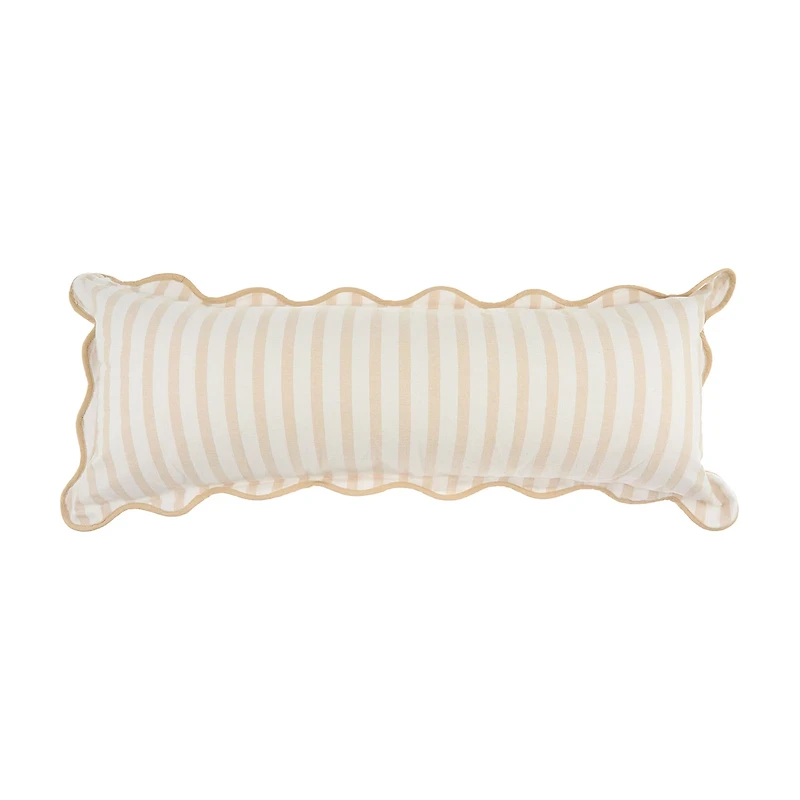 Measuring a generous size, this lumbar pillow provides excellent support for your lower back, making it not only a beautiful decorative item but also a functional one. The classic tan and white striped pattern adds a touch of understated luxury to any room, seamlessly blending with various decor styles from modern to traditional.
