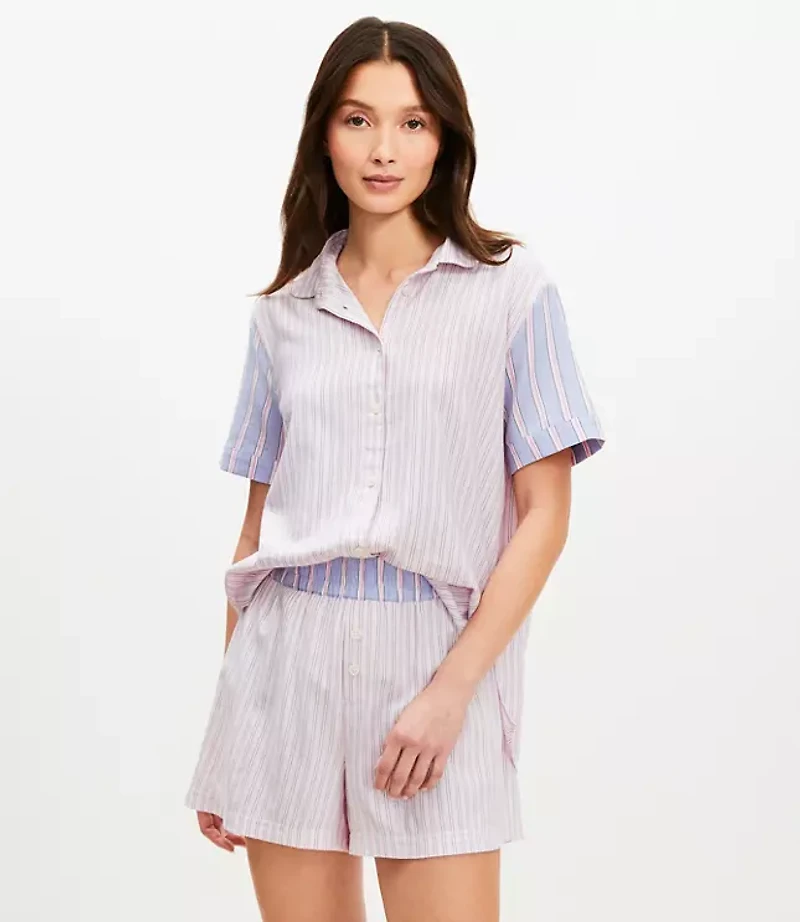 Say hello to chic dreams ( and good night to sacrificing style ) with this soft pajama set. Top: Notched lapel. Short sleeves Button front 27"long. Shorts: Elasticized waist. Faux button fly. 3 1/2"inseam., Imported:, Fabrication: 55% Cotton 45 Viscose, Garment Care: Machine Washable Loft Striped Pajama Set Size XS Posy Pink Women's by Loft Size Regular - XS Posy Pink Women's Sleepwear, 55% Cotton 45% Viscose Machine Washable