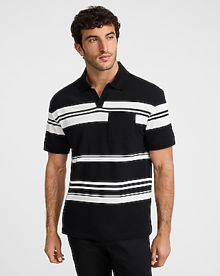 Quality shines through in our 100% premium pima cotton with it's smooth, silky feel and stretch for endless comfort. Perfect for the transitional season, this polo is complete with a Johnny collar, short sleeves, and a horizontal striped pattern.